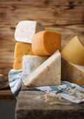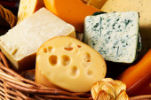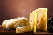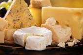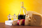 ser, wino i inne smaczne rzeczy na drewnianym stole