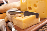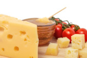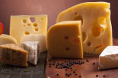 ser, wino i inne smaczne rzeczy na drewnianym stole