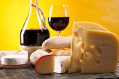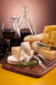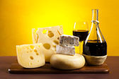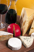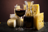 ser, wino i inne smaczne rzeczy na drewnianym stole