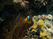Amfiprion bicinctus lub klaun z Morza Czerwonego ukrywający się w anemonie rafy koralowej, Sharm El Sheikh, Egipt