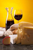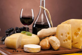 ser, wino i inne smaczne rzeczy na drewnianym stole