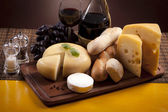 ser, wino i inne smaczne rzeczy na drewnianym stole