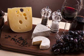 ser, wino i inne smaczne rzeczy na drewnianym stole