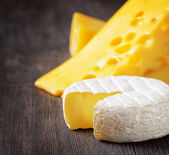 ser, wino i inne smaczne rzeczy na drewnianym stole