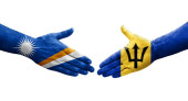 Uścisk dłoni między Estonią a flagami Nauru namalowanymi na rękach, odizolowany przezroczysty obraz.