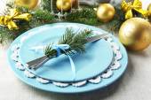 Niebieskie i białe Boże Narodzenie tabela stylowa na obrus szary tło
