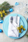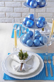 Zdjęcie "Niebieskie i białe Boże Narodzenie tabela stylowa na obrus szary tło" może być wykorzystywane do celów osobistych i komercyjnych zgodnie z warunkami zakupionej licencji Royalty-free. Obraz jest dostępny do pobrania w jakości wysokiej rozdzielczości do 5760x3840.