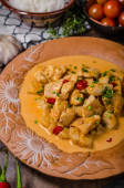 Kurczak curry ze świeżym warzywem, ziołami i grzybami