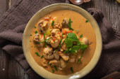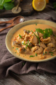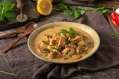 Kurczak curry ze świeżym warzywem, ziołami i grzybami