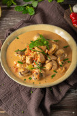 Zdjęcie "Kurczak curry ze świeżym warzywem, ziołami i grzybami" może być wykorzystywane do celów osobistych i komercyjnych zgodnie z warunkami zakupionej licencji Royalty-free. Obraz jest dostępny do pobrania w jakości wysokiej rozdzielczości do 5760x3840.