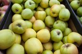 Świeża gruszka na żaglu na targu warzywnym. Skupienie selektywne