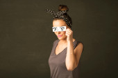 Zdjęcie "Szczęśliwa dziewczyna patrząc z ręcznie rysowane okulary papierowe oko " może być wykorzystywane do celów osobistych i komercyjnych zgodnie z warunkami zakupionej licencji Royalty-free. Obraz jest dostępny do pobrania w jakości wysokiej rozdzielczości do 5760x3840.