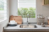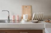 Zdjęcie "biały czysty licznik w kuchni z naczynie" może być wykorzystywane do celów osobistych i komercyjnych zgodnie z warunkami zakupionej licencji Royalty-free. Obraz jest dostępny do pobrania w jakości wysokiej rozdzielczości do 5760x3840.