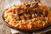 Zdjęcie "Azjatycki smażony ryż z mięsem z bliska. pionowe" może być wykorzystywane do celów osobistych i komercyjnych zgodnie z warunkami zakupionej licencji Royalty-free. Obraz jest dostępny do pobrania w jakości wysokiej rozdzielczości do 5760x3840.