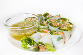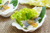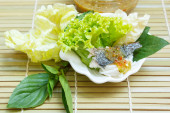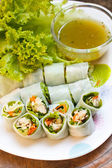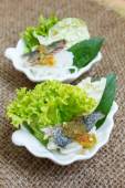 Smażona makrela serwowane z gotowany ryż tajski wermiszel.
