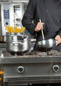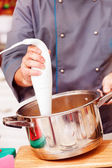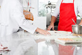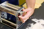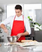 Szef kuchni, mieszając ciasto przygotować makaron Ravioli w kuchni