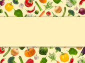 Zdjęcie "Wzór z różnych warzyw. Koncepcja świeżej i surowej żywności. Leżał płaski z przestrzenią kopiowania." może być wykorzystywane do celów osobistych i komercyjnych zgodnie z warunkami zakupionej licencji Royalty-free. Obraz jest dostępny do pobrania w jakości wysokiej rozdzielczości do 5760x3840.