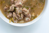 Coto Makassar to tradycyjna zupa wołowa z Makassar w południowym Sulawesi / Indonezji. Skupienie selektywne