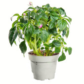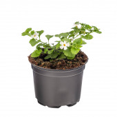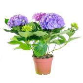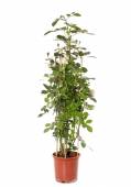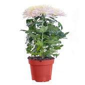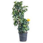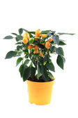 Abutilon kwitnący na białym tle w garnku w pełnym rozmiarze