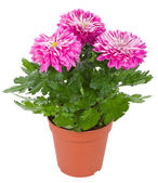 Chryzantema biało kwitnący na jasnym tle w doniczce