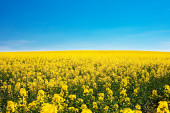 pole żółty gwałtu przeciw błękitne niebo