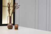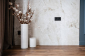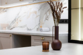 dekoracyjny brązowy wazon z kwiatami w kuchni w domu