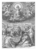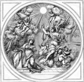 Panteon w Rzymie i objawienie Najświętszej Maryi Panny z Dzieciątkiem Chrystusa. Anioły tworzące muzykę w górnym rogu. Na chmurach Chrystus i Józef