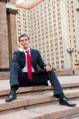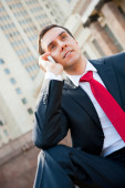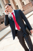 Zdjęcie "młody biznesmen wzywa na komórkę" może być wykorzystywane do celów osobistych i komercyjnych zgodnie z warunkami zakupionej licencji Royalty-free. Obraz jest dostępny do pobrania w jakości wysokiej rozdzielczości do 5760x3840.