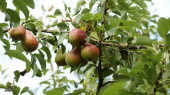 Pear tree. Pear green garden with fruit. Natural environment, outdoors.