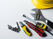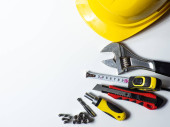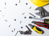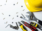 Zdjęcie "Narzędzia budowlane na białym tle z przestrzenią do kopiowania. Karta z życzeniami budowlanymi. Do reklamy lub projektowania stron internetowych. Napraw dom. Układy płaskie" może być wykorzystywane do celów osobistych i komercyjnych zgodnie z warunkami zakupionej licencji Royalty-free. Obraz jest dostępny do pobrania w jakości wysokiej rozdzielczości do 5760x3840.