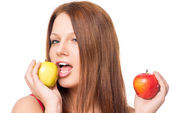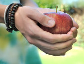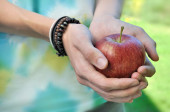 dojrzałe soczyste jabłko w rękach kochającego bliska para