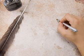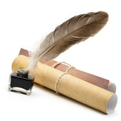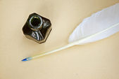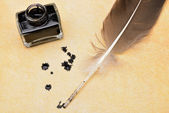 pióro Gęsie pióro i Kałamarz na stary papier