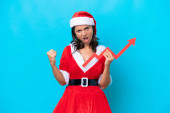 Zdjęcie "Młoda Latynoska ubrana jak mama Noel trzymająca płatki śniegu odizolowane na niebieskim tle mając wątpliwości podczas patrzenia w górę" może być wykorzystywane do celów osobistych i komercyjnych zgodnie z warunkami zakupionej licencji Royalty-free. Obraz jest dostępny do pobrania w jakości wysokiej rozdzielczości do 5760x3840.