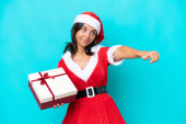 Zdjęcie "Młoda Latynoska kobieta ubrana jak mama Noel trzymająca worek odizolowany na niebieskim tle myśląc o pomyśle patrząc w górę" może być wykorzystywane do celów osobistych i komercyjnych zgodnie z warunkami zakupionej licencji Royalty-free. Obraz jest dostępny do pobrania w jakości wysokiej rozdzielczości do 5760x3840.