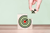 Cel wewnątrz szkło powiększające dla celów biznesowych, ręka osoby trzymającej szkło powiększające z celem, Wyszukiwanie, cel, strategia, sukces.