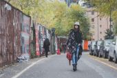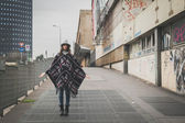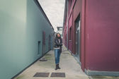 Piękna młoda brunetka pozowanie na ulicach miasta