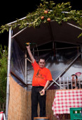 9-11-2022: Hollister, Kalifornia: Ludzie w kostiumach z epoki renesansu, Hollister California, Człowiek połykający miecz