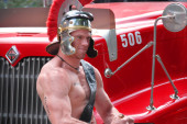 9-11-2022: Hollister, Kalifornia: Ludzie w kostiumach z epoki renesansu, Hollister California, Człowiek połykający miecz