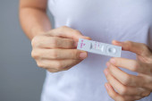 Kobieta z dodatnim wynikiem testu ciążowego spodziewająca się dziecka