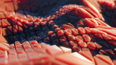 3D renderowanie, abstrakcyjne fraktalne tło, kształty mikrobiologiczne, makro natura organiczny wzór, kwantowy świat tapety oświetlone czerwonym światłem neonowym