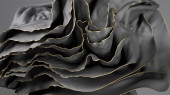 3d renderowania, abstrakcyjne tło z wieloma warstwami czarnej fali draperii ze złotymi krawędziami, tkaniny makro, faliste tapety moda z jedwabistym tekstyliów