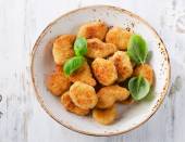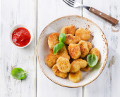 Ciecierzyca falafel z pita, sos. Widok z góry, płaski