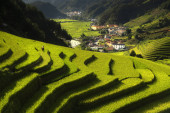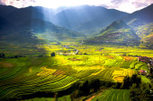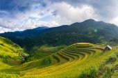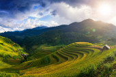 punkt widzenia pola ryżu i taras ryżu pole między drogą do mu cang chai z miasta Hanoi w Tu le vilage, Yen bai miasta, Wietnam w pobliżu