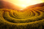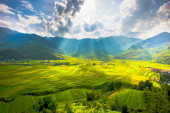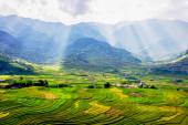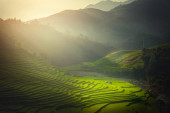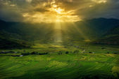 punkt widzenia pola ryżu i taras ryżu pole między drogą do mu cang chai z miasta Hanoi w Tu le vilage, Yen bai miasta, Wietnam w pobliżu