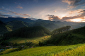 punkt widzenia pola ryżu i taras ryżu pole między drogą do mu cang chai z miasta Hanoi w Tu le vilage, Yen bai miasta, Wietnam w pobliżu