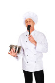 Zdjęcie "Szef kuchni w biały uniform, degustacja jego zupa" może być wykorzystywane do celów osobistych i komercyjnych zgodnie z warunkami zakupionej licencji Royalty-free. Obraz jest dostępny do pobrania w jakości wysokiej rozdzielczości do 5760x3840.