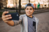 Zdjęcie "Uśmiechnięty, ciemnowłosy nastolatek siedzący na betonowej poręczy trzymający przed sobą komórkę." może być wykorzystywane do celów osobistych i komercyjnych zgodnie z warunkami zakupionej licencji Royalty-free. Obraz jest dostępny do pobrania w jakości wysokiej rozdzielczości do 5760x3840.