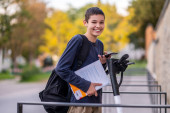 Zdjęcie "Uśmiechnięty, skupiony, ciemnowłosy nastolatek trzymający telefon komórkowy na ekranie LCD skutera elektrycznego" może być wykorzystywane do celów osobistych i komercyjnych zgodnie z warunkami zakupionej licencji Royalty-free. Obraz jest dostępny do pobrania w jakości wysokiej rozdzielczości do 5760x3840.