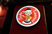 BANGKOK, Tajlandia - LIPIEC 13, 2021: GUGU Chicken Sign to słynna koreańska restauracja z chrupiącymi kurczakami w Tajlandii, która otworzyła pierwszą tajlandzką filię w 2020 roku..
