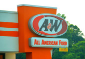 BANGKOK, Tajlandia - 12 marca 2022: A & W Restaurants Sign, A & W to słynna amerykańska sieć restauracji fast-food, założona w czerwcu 1919 roku..